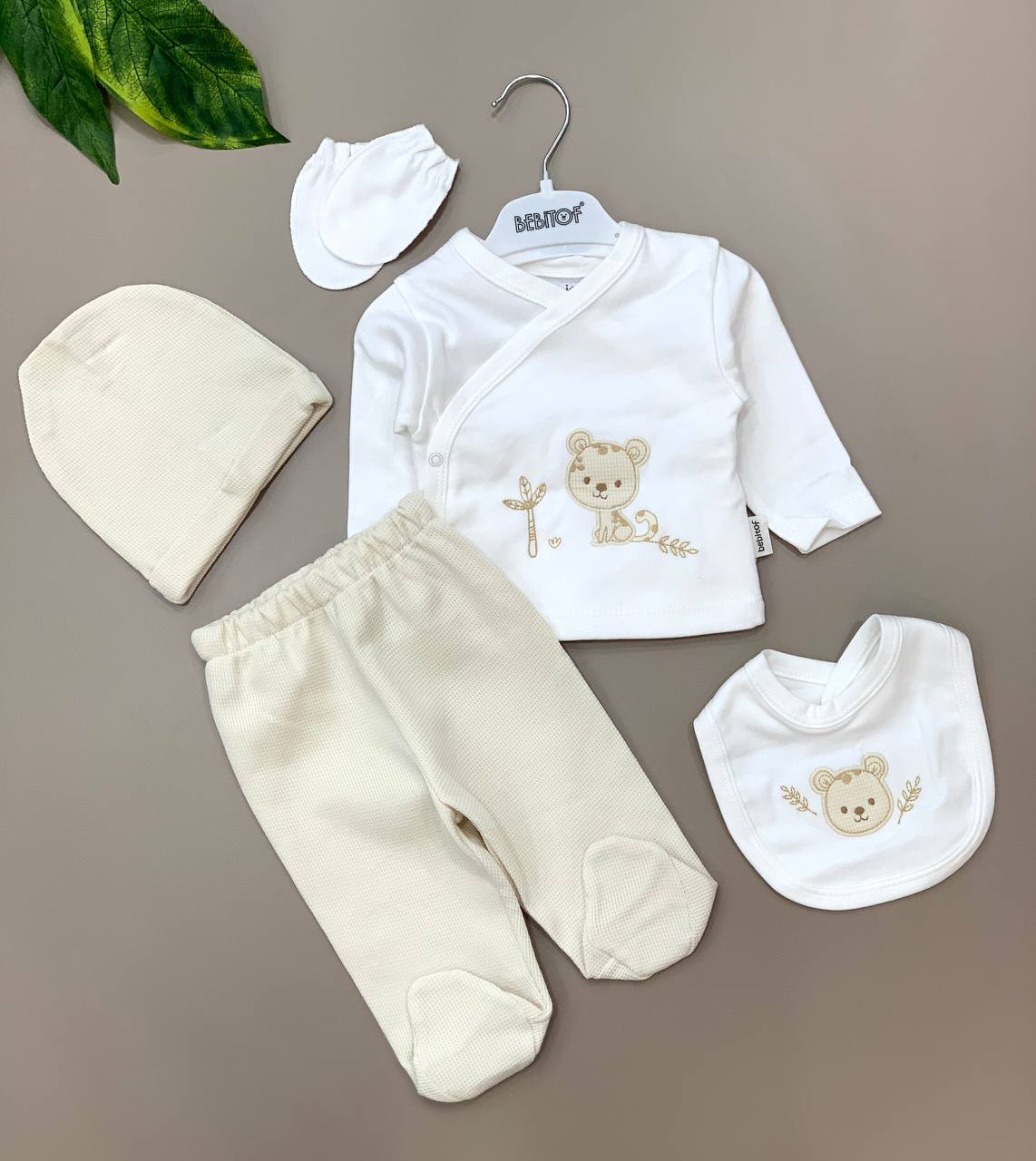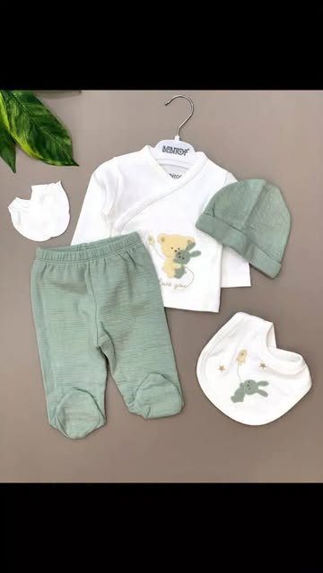 ست بیمارستانی بلوز جلو دکمه دار و شلوار با جوراب سایز صفر تا ۳ ماه